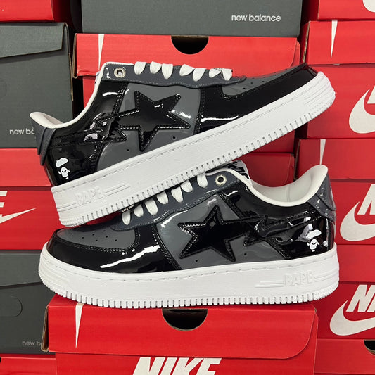 A Bathing Ape Bapesta - (SHINY BLACK/WHITE)